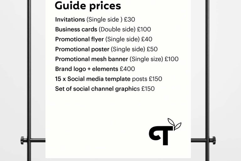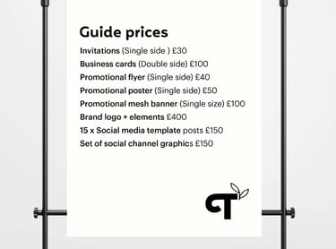 I'm an affordable and approachable designer and I'm happy to talk through any project you need help with, whether that's large format graphics, or small-run promotional materials. I can help with starting-from-scratch brand creation, and also personal lifestyle design projects such as wedding invitations.